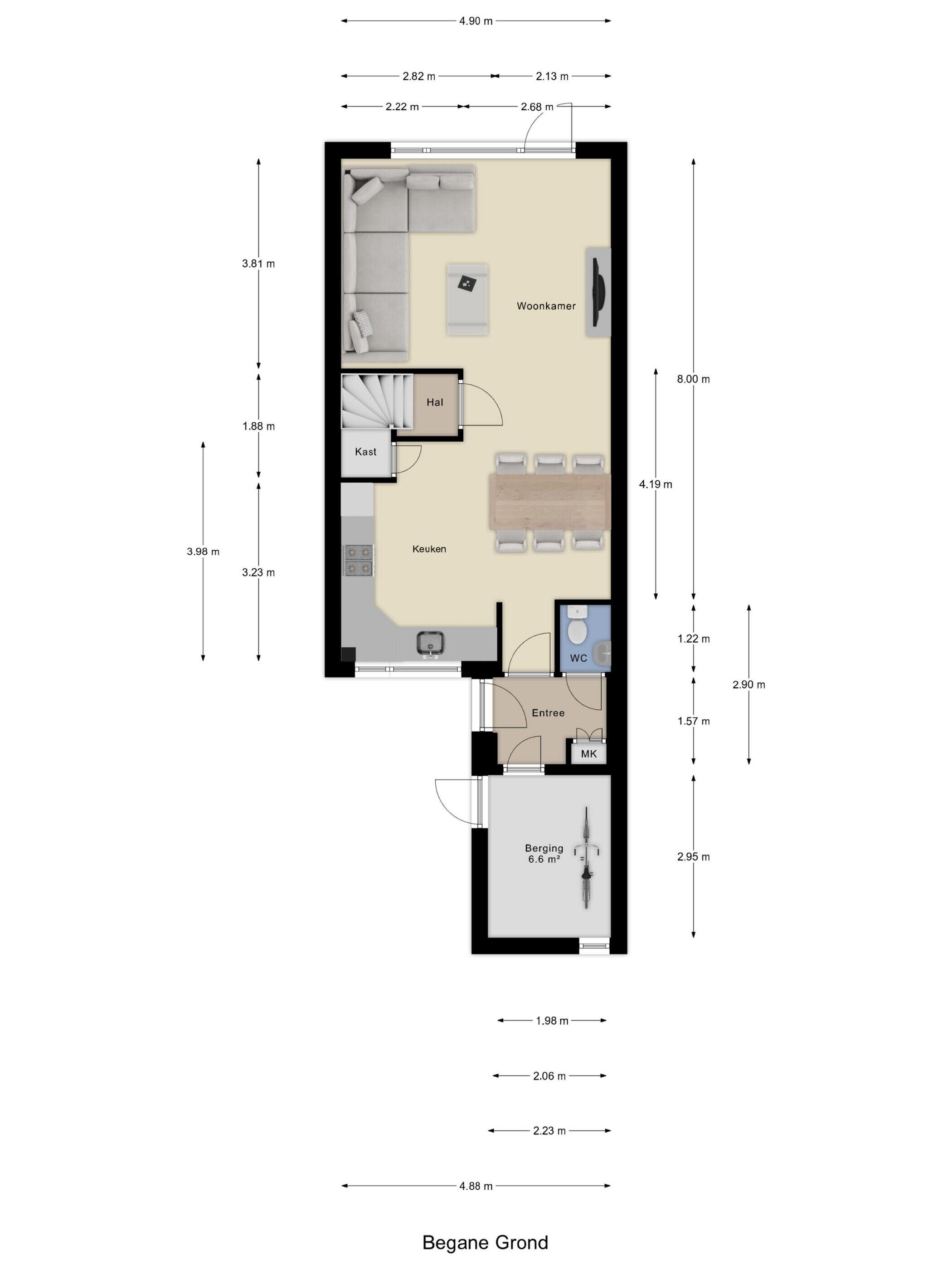 - 51 m² (10.04 meter diep en 5.1 meter breed)