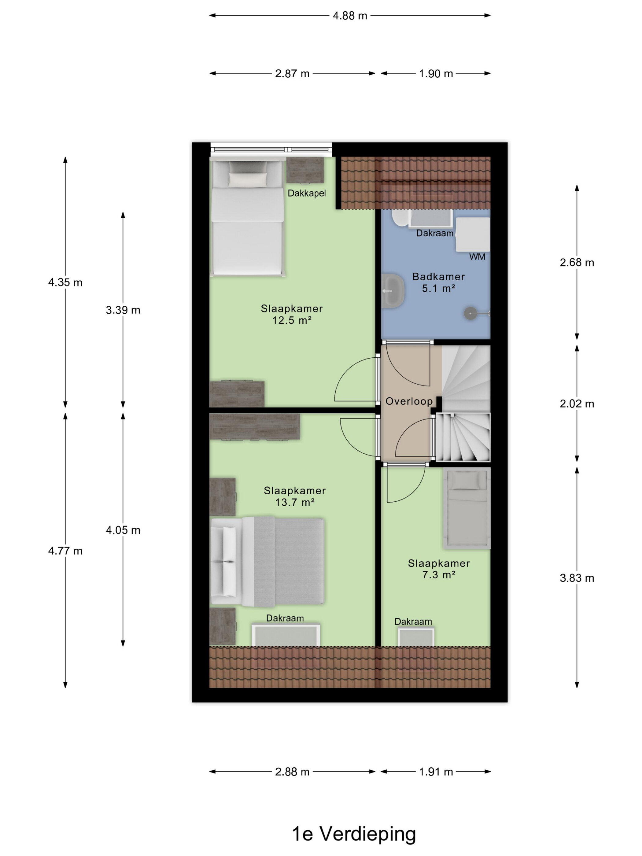 + Extra meters: Dakkapel slaapkamer aan de voorzijde en een volwaardige zolderverdieping